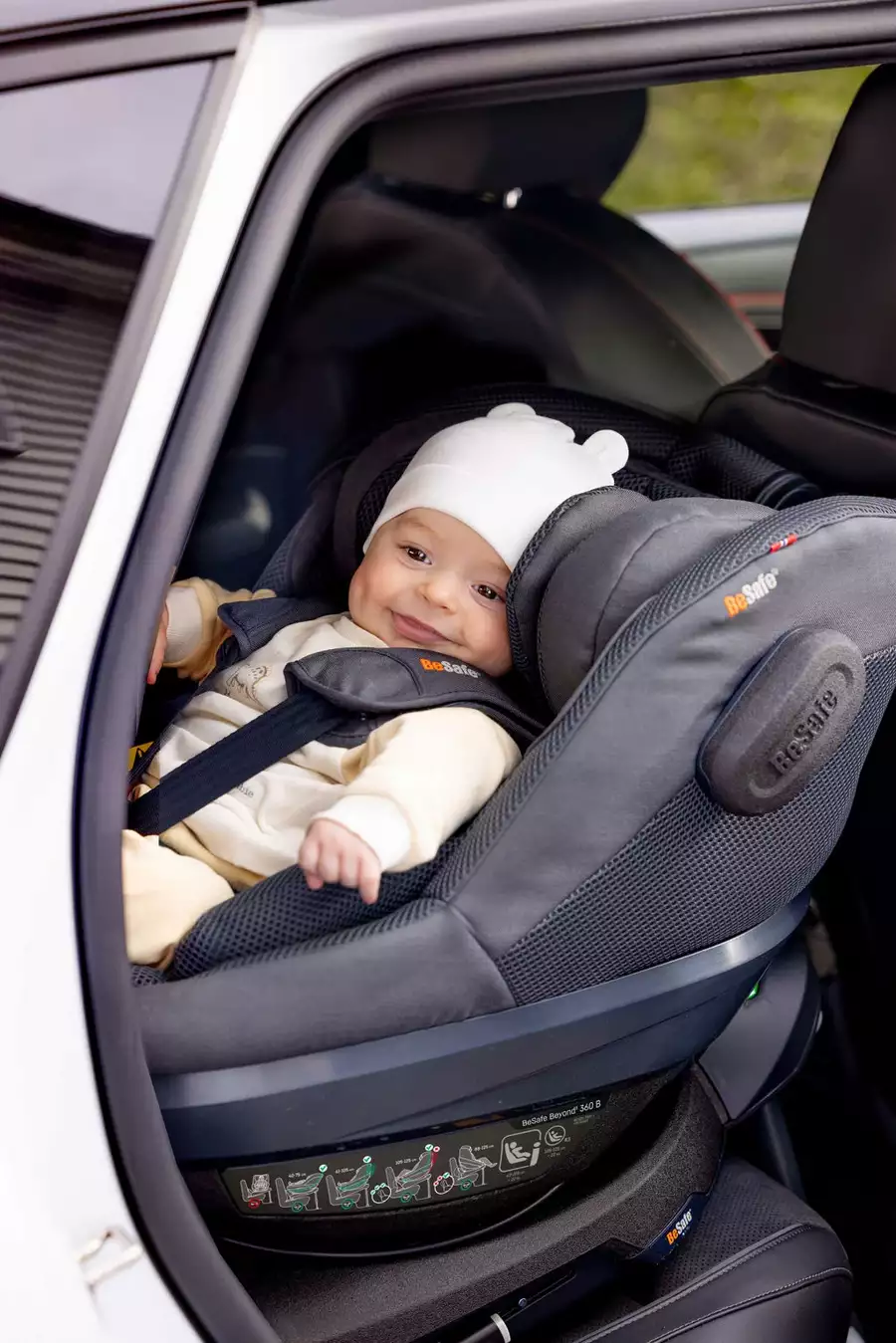 BeSafe Beyond² 360 B, es una silla de auto rotatoria 360º con Baby Shell™. Homologada hasta 6 años (125 cm/22 kg), combina seguridad a contramarcha, confort y fácil instalación con ISOfix.