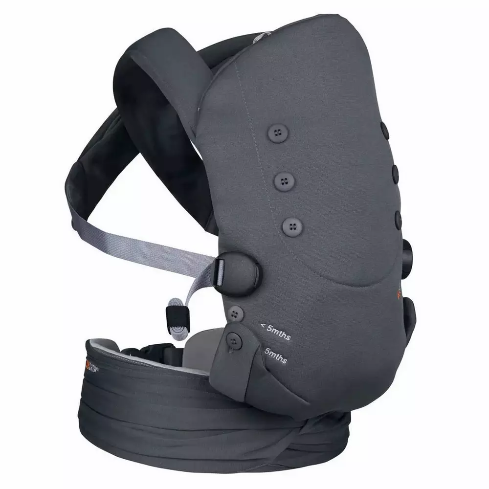 Accesorio para recién nacido diseñado para los primeros meses, con apoyo para cabeza y columna y posición ergonómica de rodilla a rodilla en color Anthracite con acabado Forest.