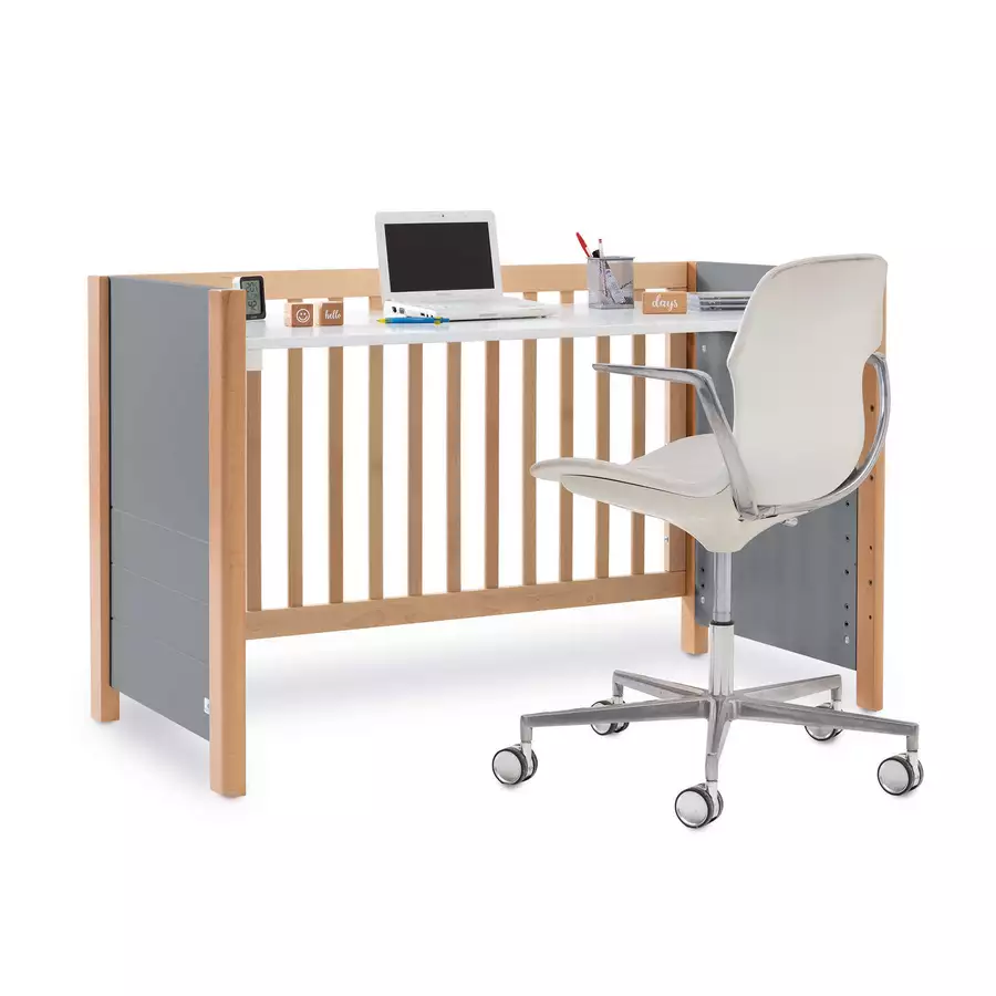 Una cuna útil y elegante, ¡así es nuestra cunita para bebé Ombra Antracita 60×120 cm! Con esta cuna de colecho podrás tener un mueble funcional durante toda la infancia de tu bebé. Primero será usada como cuna y, una vez terminada esta etapa, se podrá convertir en un práctico escritorio para alargar la vida útil del producto hasta lo 14 años del niño o niña. También dispone de diversos kits opcionales para convertir esta cuna en otras fases para que se adapte mejor a las necesidades de tu peque (y a las tuyas). Con estos kits, la cuna se puede convertir en una cuna de colecho segura, en una camita infantil o en un sofá infantil. De esta manera dispondrás de 5 muebles en 1. Combina un elegante gris en los cabeceros con la estructura de madera. ¡Perfecta para crear un lugar único en la habitación del bebé!