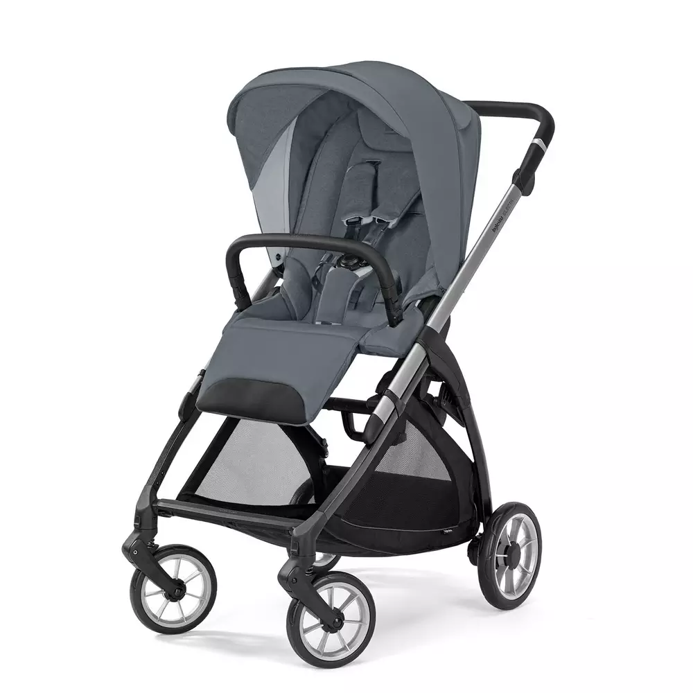 Sistema dúo en elegante color Union Grey con chasis plateado, ideal para padres que buscan estilo y funcionalidad.