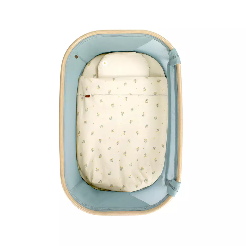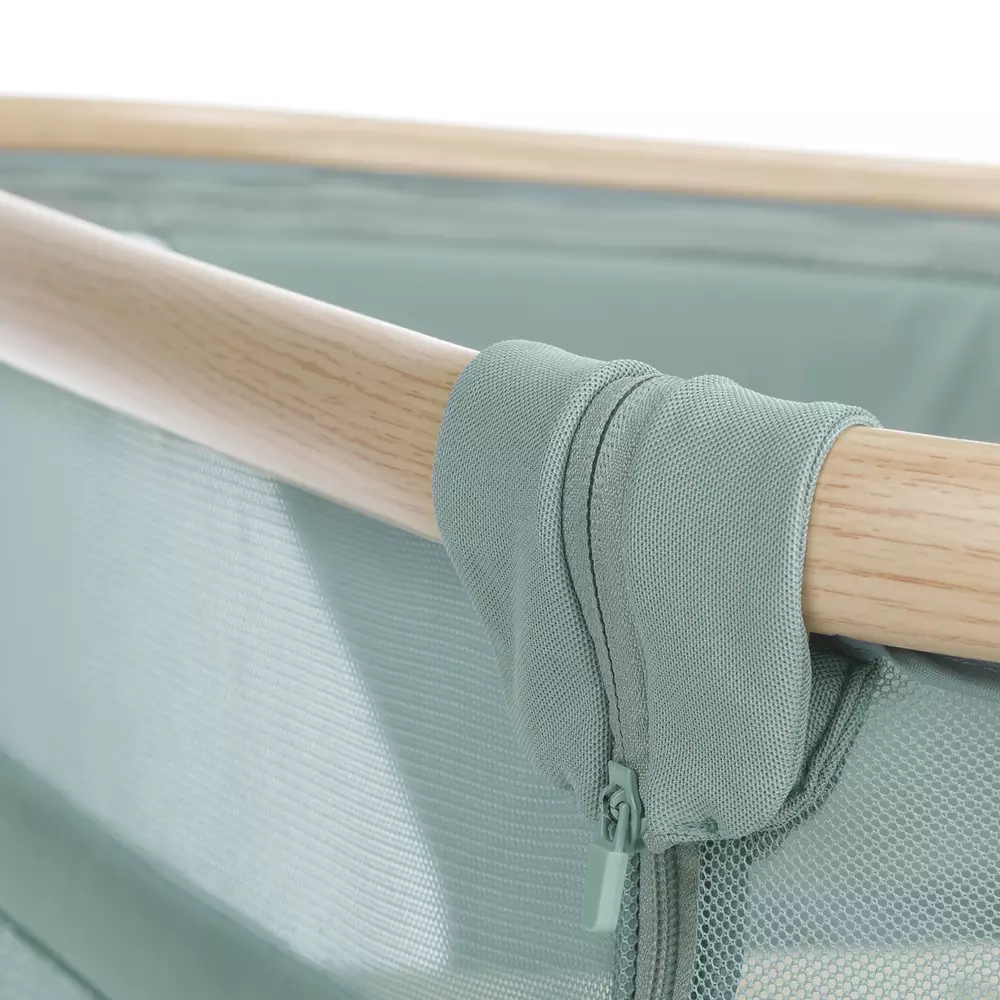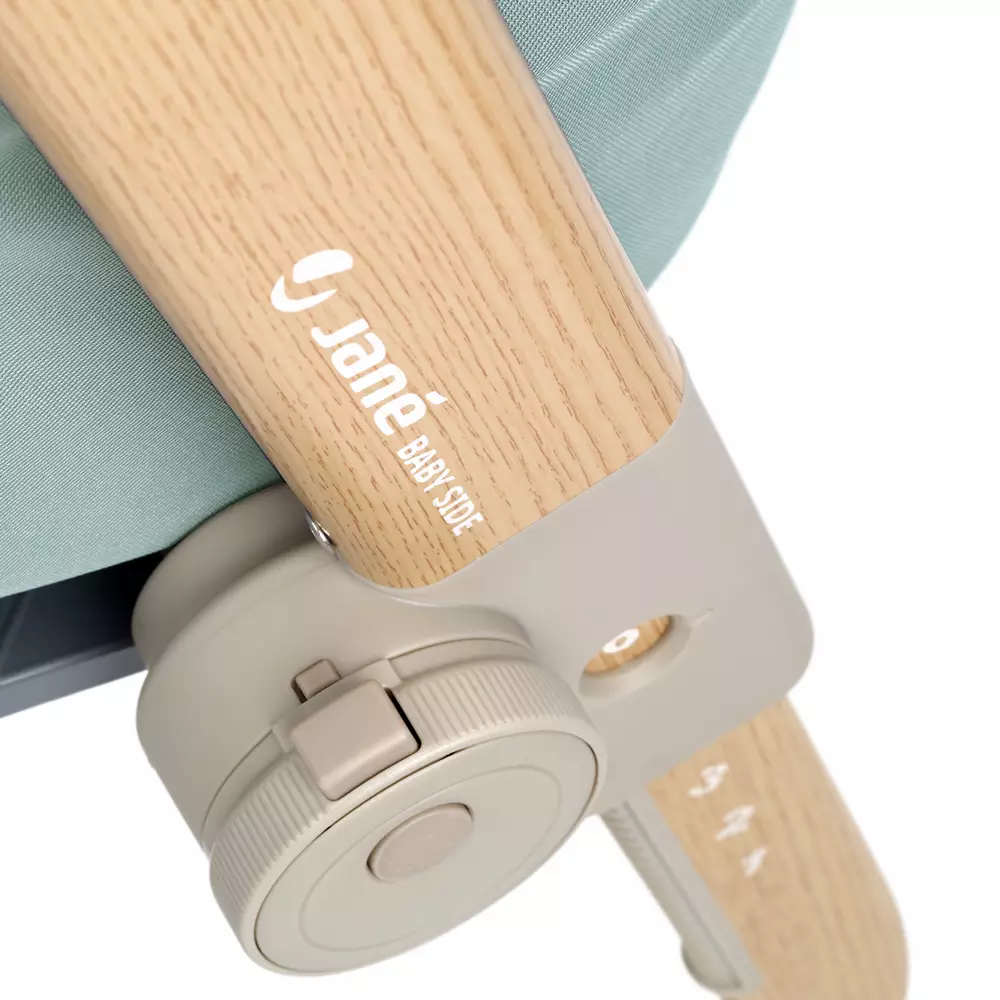 Minicuna de colecho Jané BabySide apta desde el nacimiento, regulable en 6 alturas y válida para todo tipo de camas. Incluye colchón transpirable y textiles completos. Disponible en Pekenova.