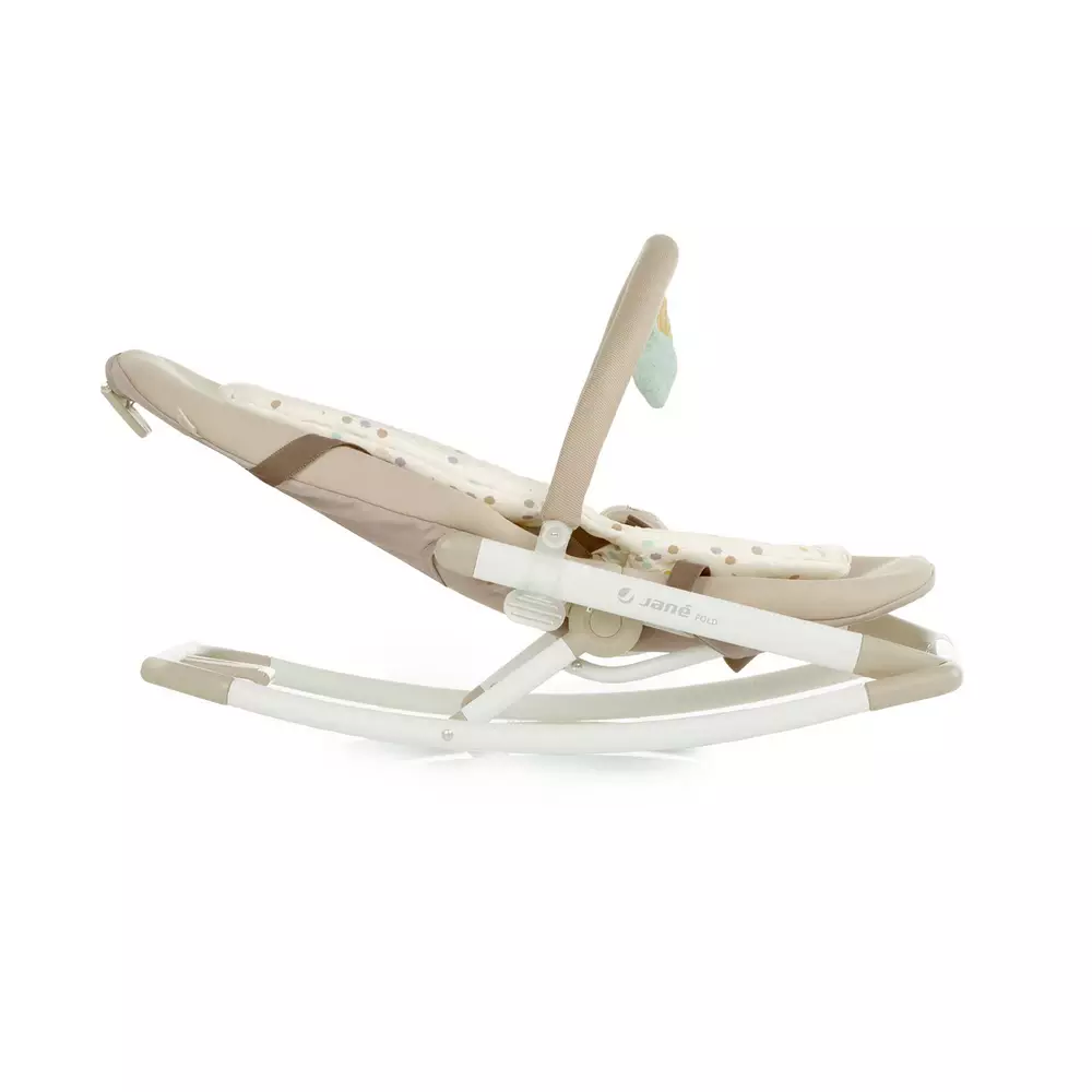 Hamaca Jané Fold ultraligera y plegable, apta desde el nacimiento hasta 9 kg, con respaldo regulable y plegado compacto. Disponible en Pekenova.