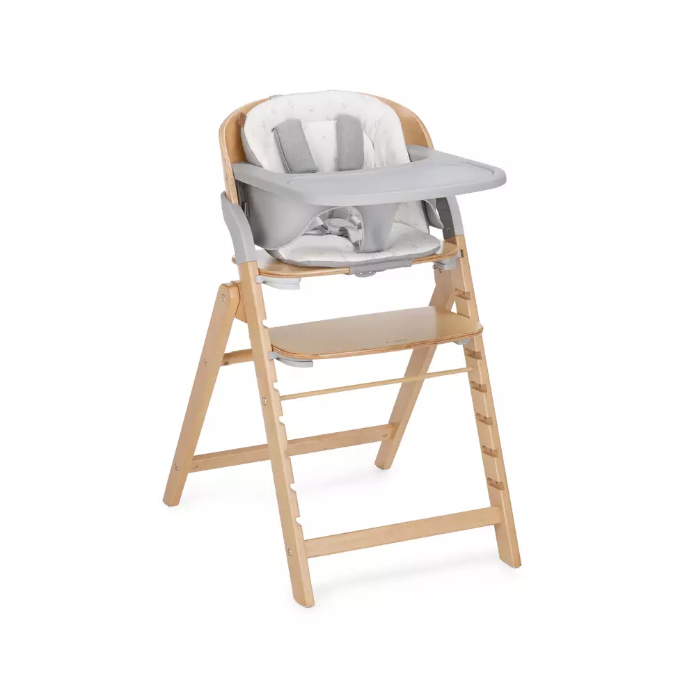 Trona evolutiva Jané Forest fabricada en madera de haya, plegable y válida desde los 6 meses hasta 100 kg. Incluye sobrebandeja de silicona y tapizado lavable. Disponible en Pekenova.