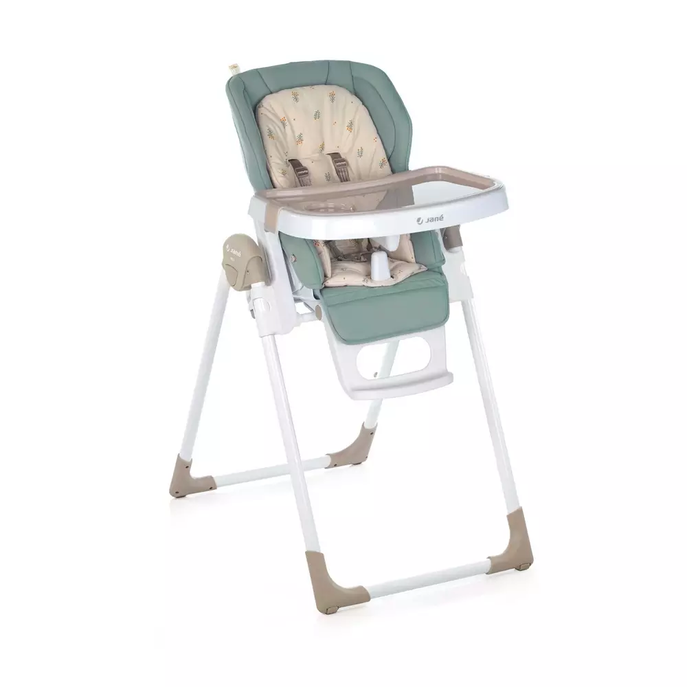 Trona Jané Mila convertible en hamaca, apta desde el nacimiento hasta los 3 años, con múltiples posiciones de altura y reclinado. Plegable y disponible en Pekenova.