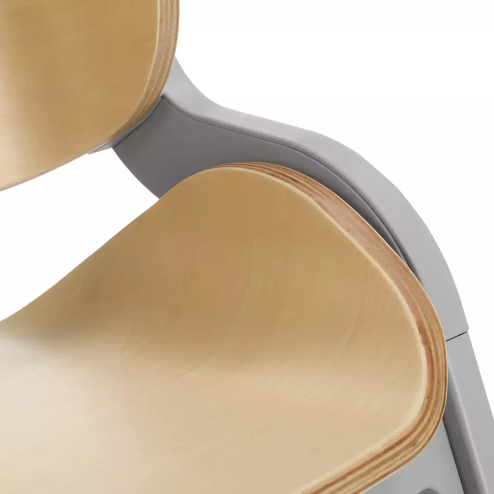 - Asiento, respaldo de silicona y reposapiés fabricados en madera de tilo.