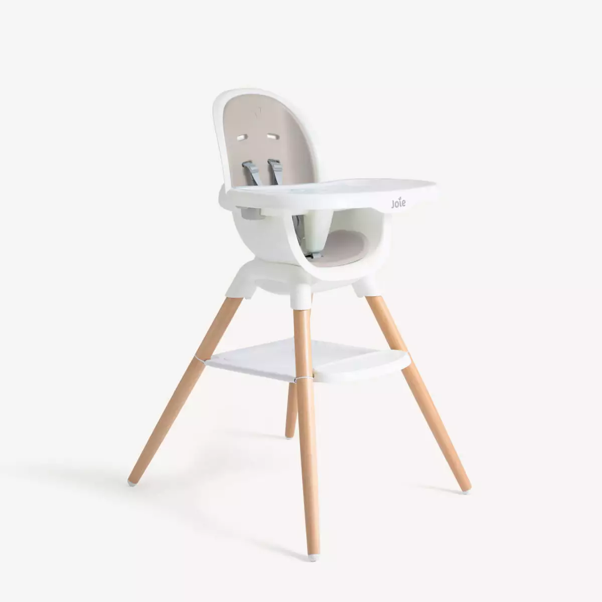 Cuenta con 4 posiciones de reclinado, patas de madera regulables en altura, suave arnés de 5 puntos y bandeja ajustable en 3 posiciones. El respaldo desmontable y el modo elevador con correas incluidas permiten seguir utilizándola cuando el niño crece.