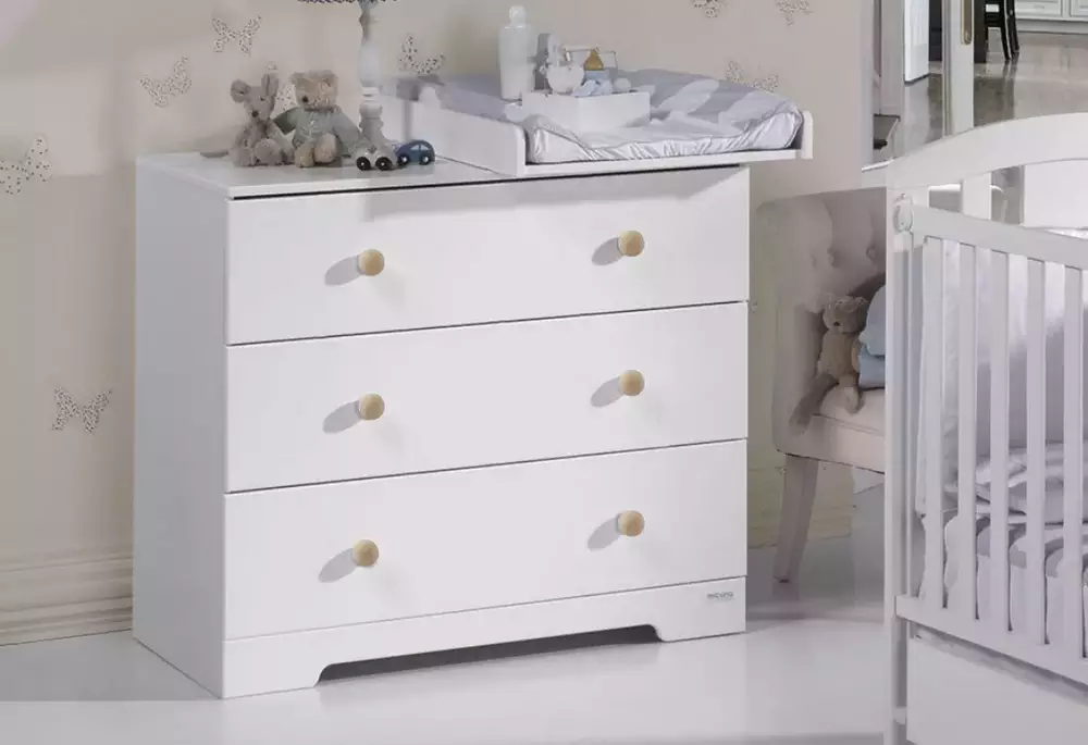 La cómoda Micuna CO-1804 cuenta con 3 amplios cajones con gran capacidad de almacenaje, perfectos para ropa, textiles y accesorios del bebé. Incluye kit de anclaje a pared, garantizando una correcta estabilidad del mueble.