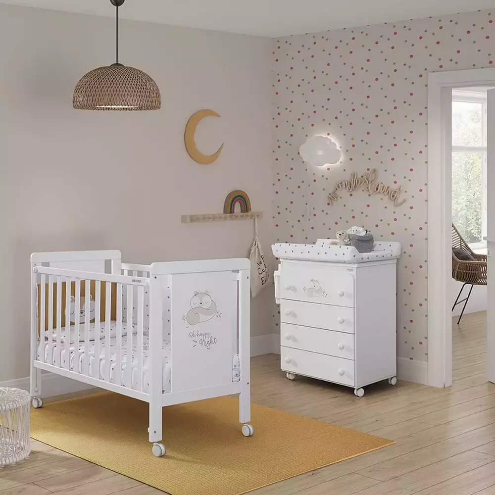 La Micuna Cuna Happy 120×60 en color Blanco es una cuna de líneas limpias y estética moderna, pensada para crear un ambiente luminoso y armonioso en la habitación del bebé. Su acabado blanco facilita la combinación con cualquier estilo decorativo y con el resto de mobiliario infantil.