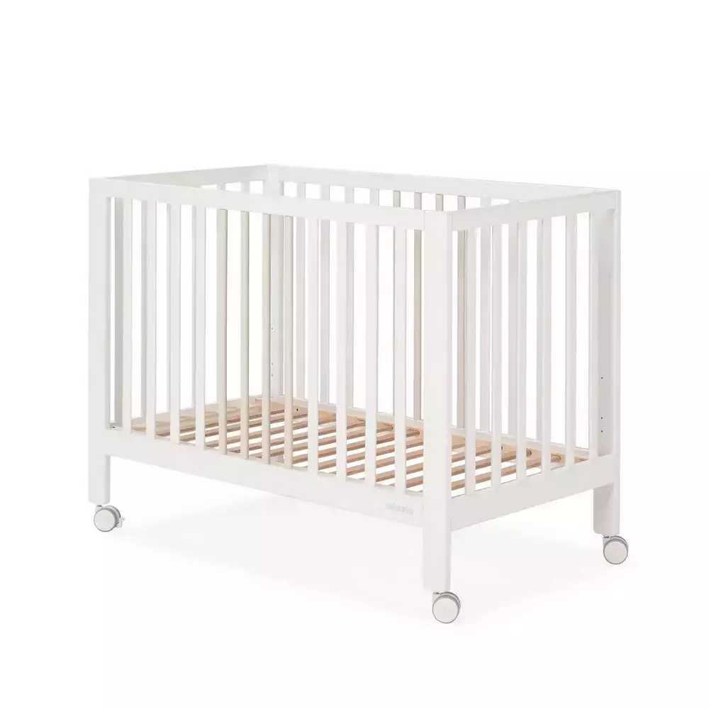 Incluye 4 ruedas, dos de ellas con freno, que permiten mover la cuna cómodamente y fijarla de forma segura cuando está en uso. Además, ofrece la posibilidad de retirar un lateral y añadir una barrera quitamiedos (opcional), alargando su uso más allá de la etapa de cuna, una ventaja muy valorada por las familias de Pekenova.