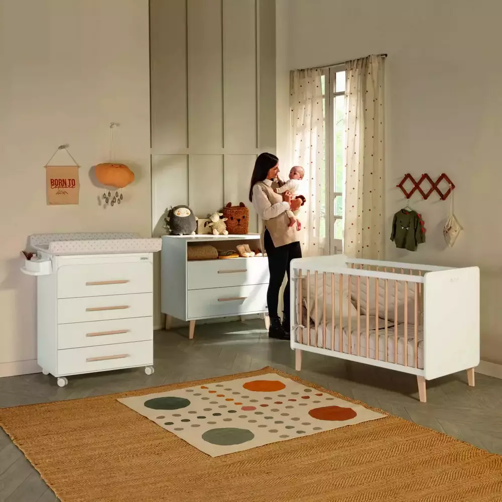 La Micuna Cuna Trevi 120×60 en acabado Blanco-Madera combina un diseño actual con la calidez de la madera, creando un conjunto equilibrado y elegante para la habitación del bebé. Sus líneas rectas y su estética cuidada la convierten en una opción versátil y fácil de integrar en distintos estilos decorativos.