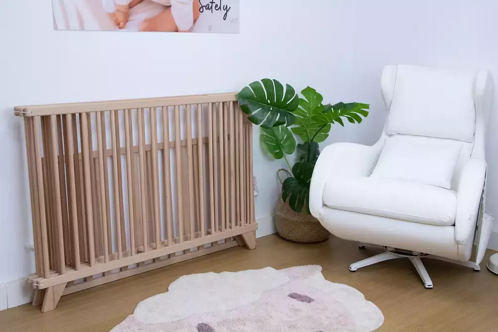 Fabricada con madera de haya procedente de bosques sostenibles y acabados al agua, cumple con las normativas europeas de seguridad, garantizando un entorno saludable y seguro para el descanso del bebé.