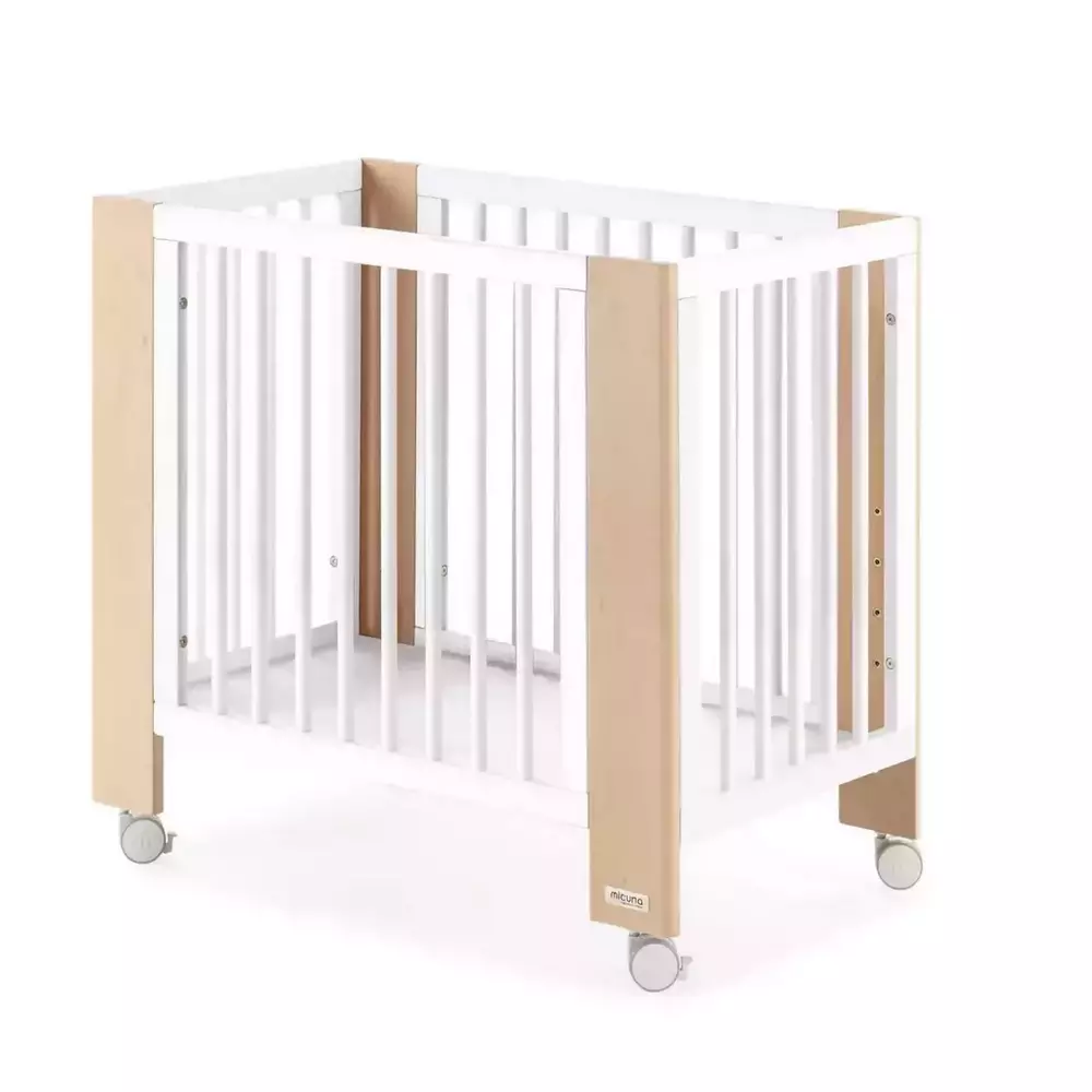 Minicuna Micuna Converbaby 90×50 en blanco y madera, práctica y cuidada, diseñada para el descanso del bebé durante sus primeros meses.