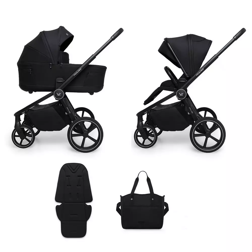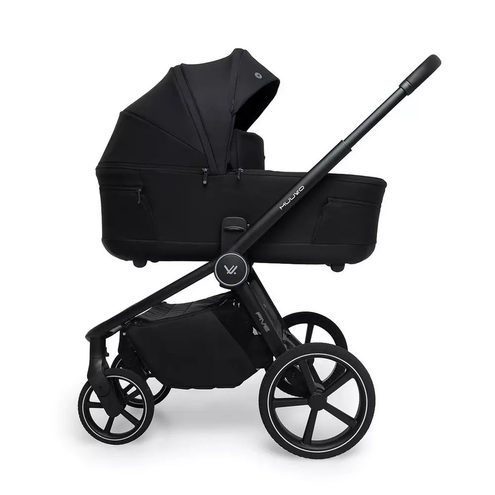 Muuvo Five Classic Black, carro dúo con capazo, silla y accesorios incluidos, pensado para acompañar a tu bebé desde el nacimiento hasta los 4 años.