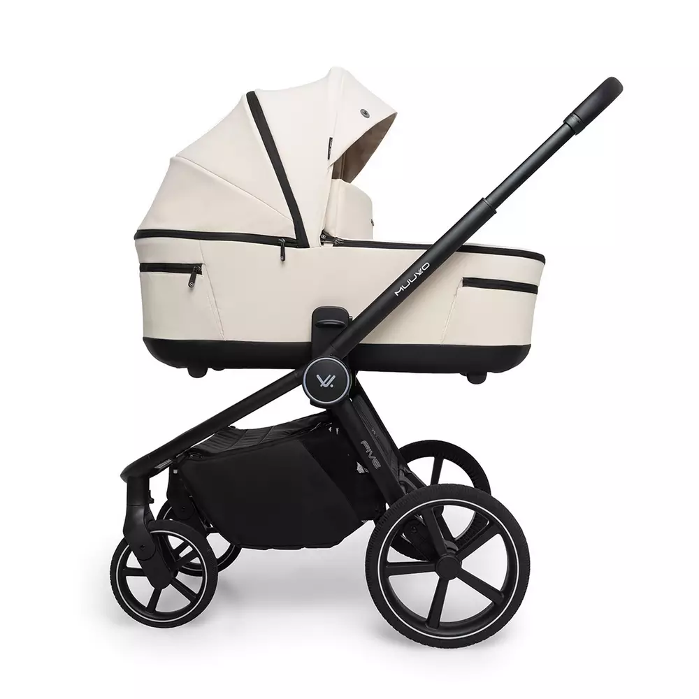 Muuvo Five Desert Sand, carro dúo con capazo, silla y accesorios incluidos, pensado para acompañar a tu bebé desde el nacimiento hasta los 4 años.