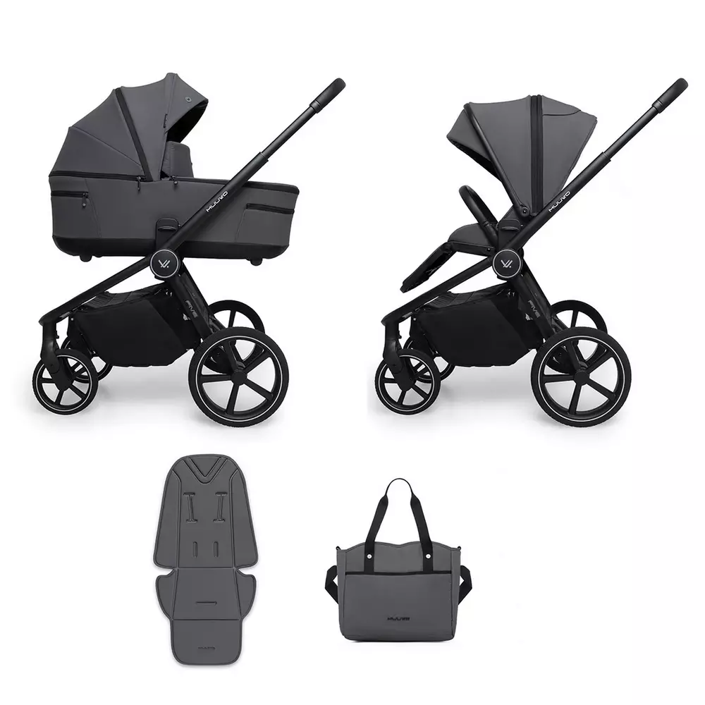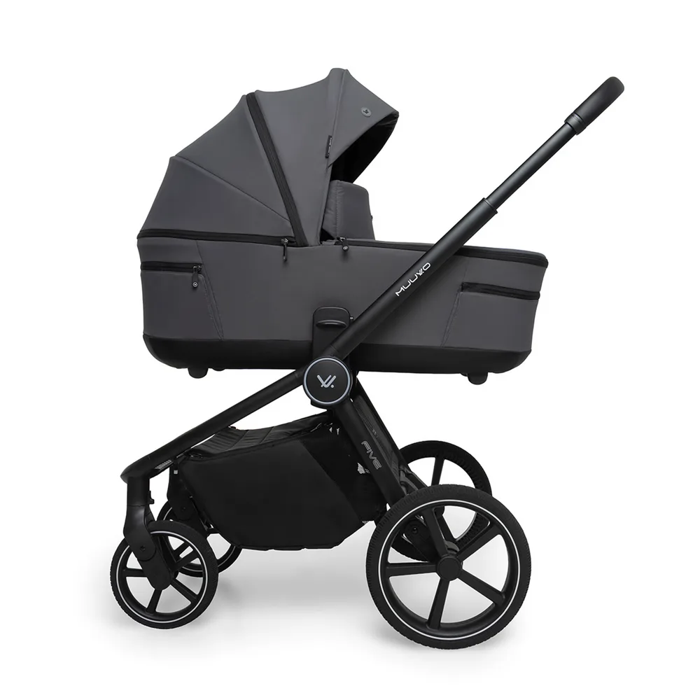 Muuvo Five Iron Graphite, carro dúo con capazo, silla y accesorios incluidos, pensado para acompañar a tu bebé desde el nacimiento hasta los 4 años.